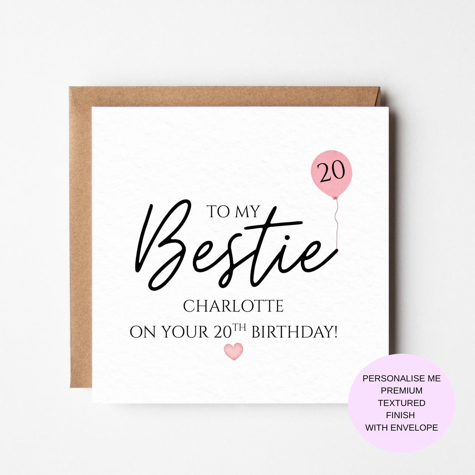 Best Friend 20th Birthday Card, Bestie Birthday Card, Sister Card, Birthday Card, Best Friend Card, Bestie 20th Birthday Card, BF1