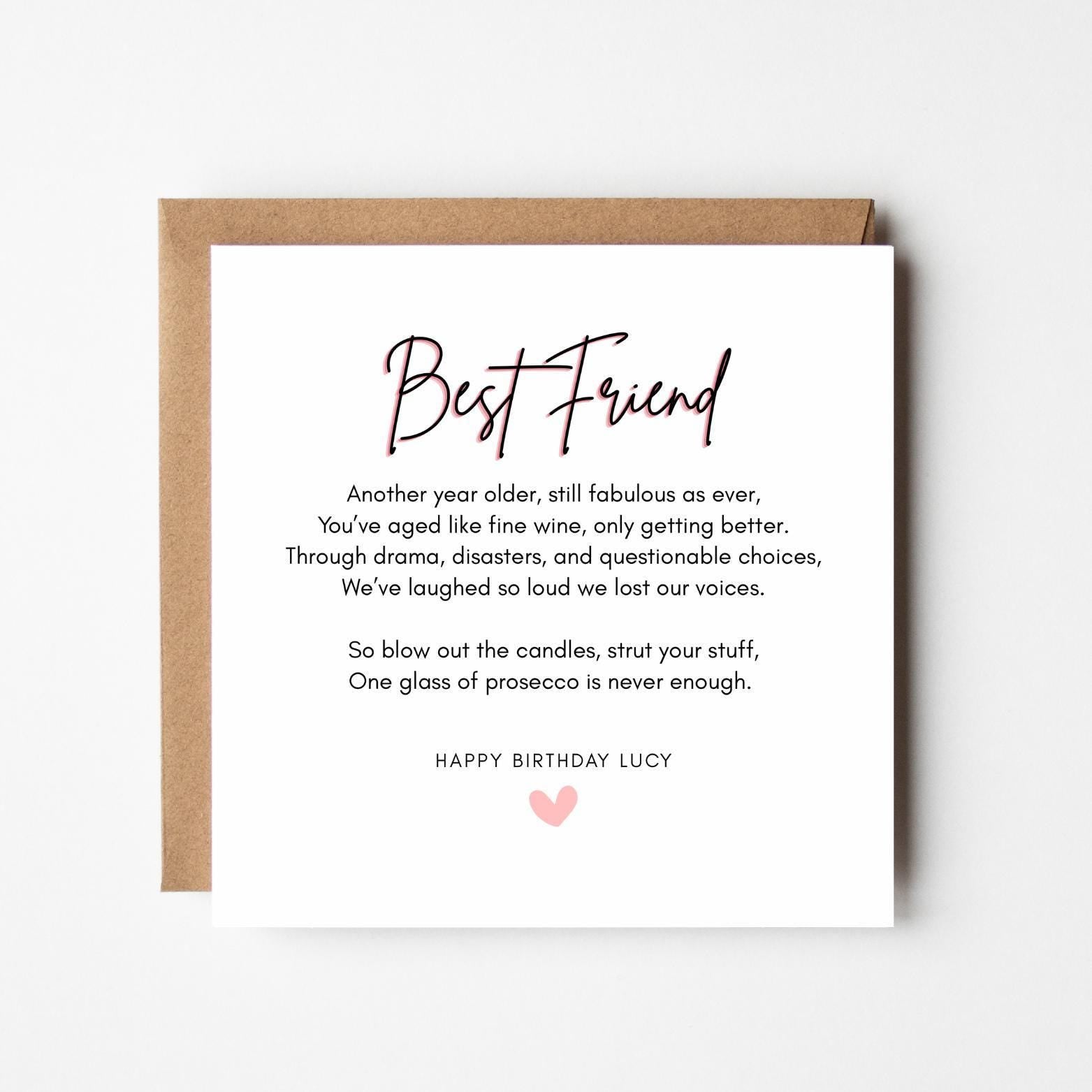 Funny Best Friend Birthday Card – Personalised Poem Card, Prosecco Birthday Card, Bestie Greeting Card, Custom Name Option