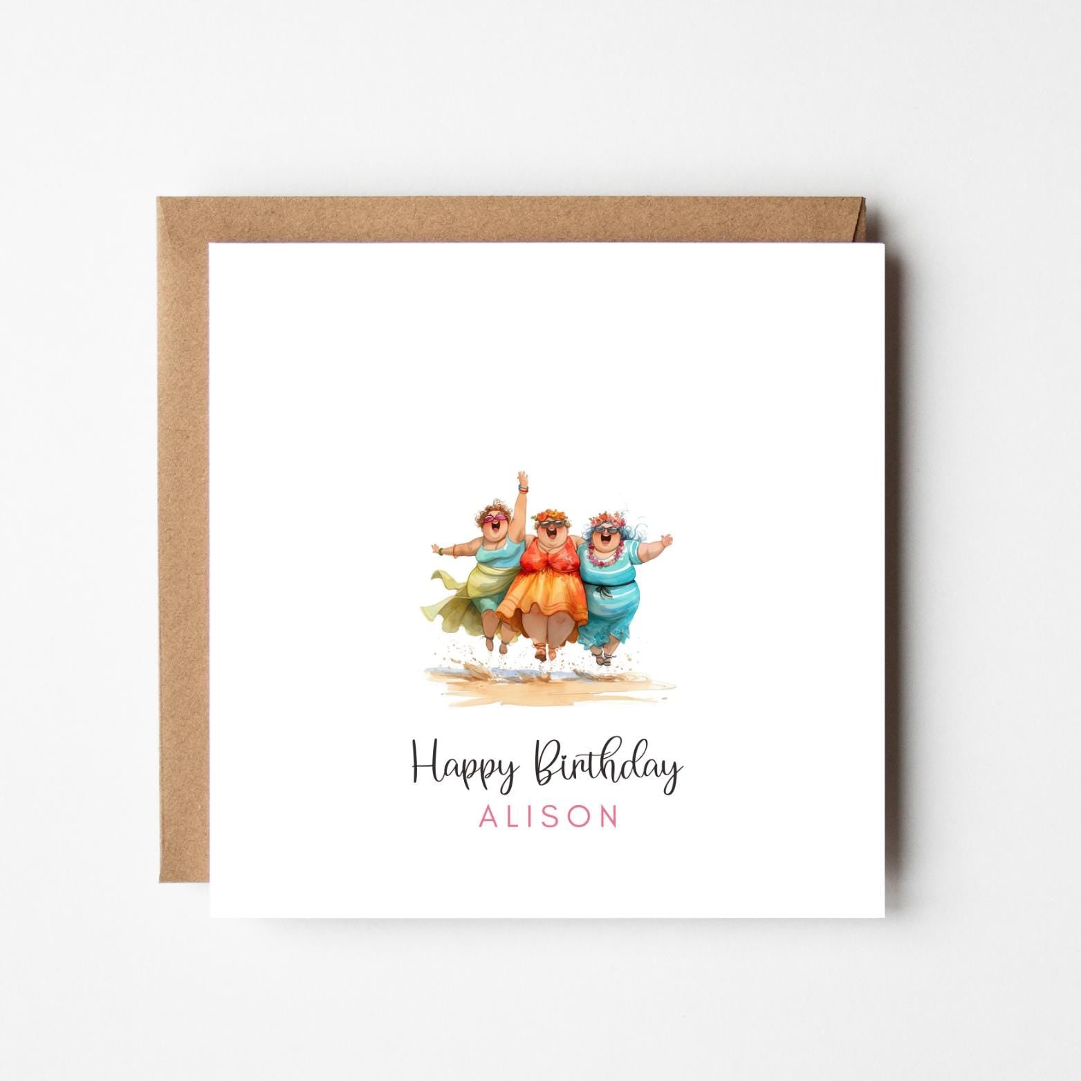 Funny Ladies Beach Personalised Birthday Card – Custom Name Greeting – Humorous Friends Card – Handmade Birthday Card for Her