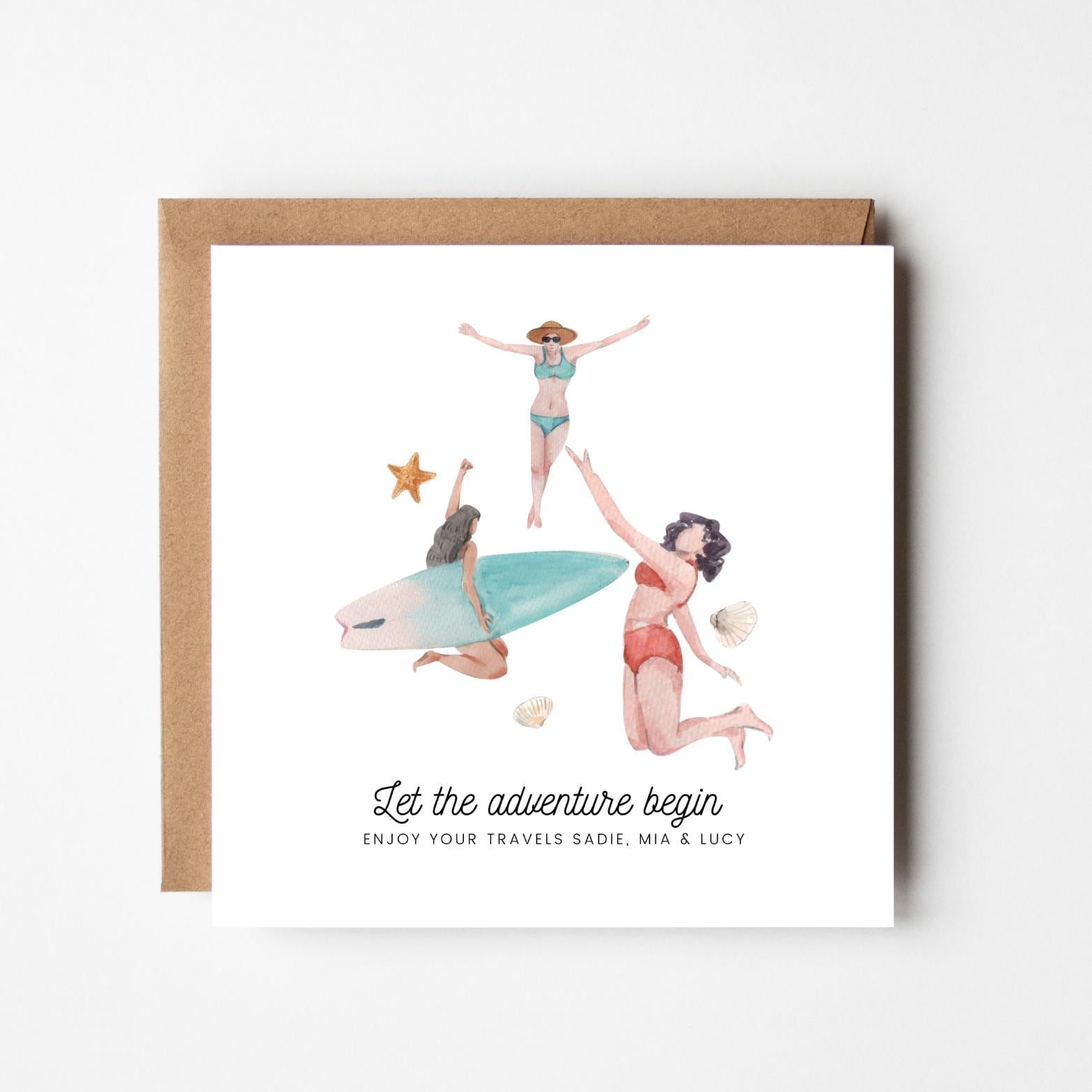 Personalised Bon Voyage Card: Watercolour Beach Design, Safe Travels
