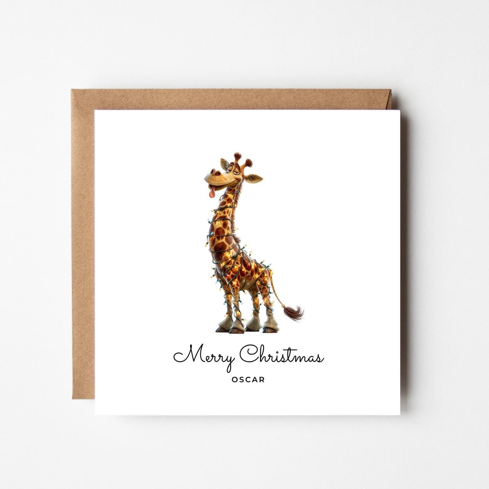 Personalised Funny Giraffe Christmas Card: Handmade Festive Xmas Greeting