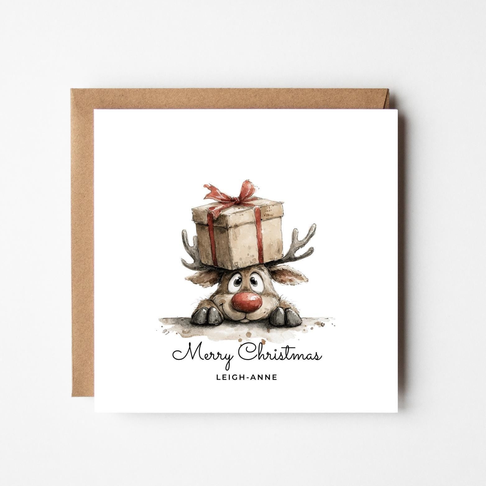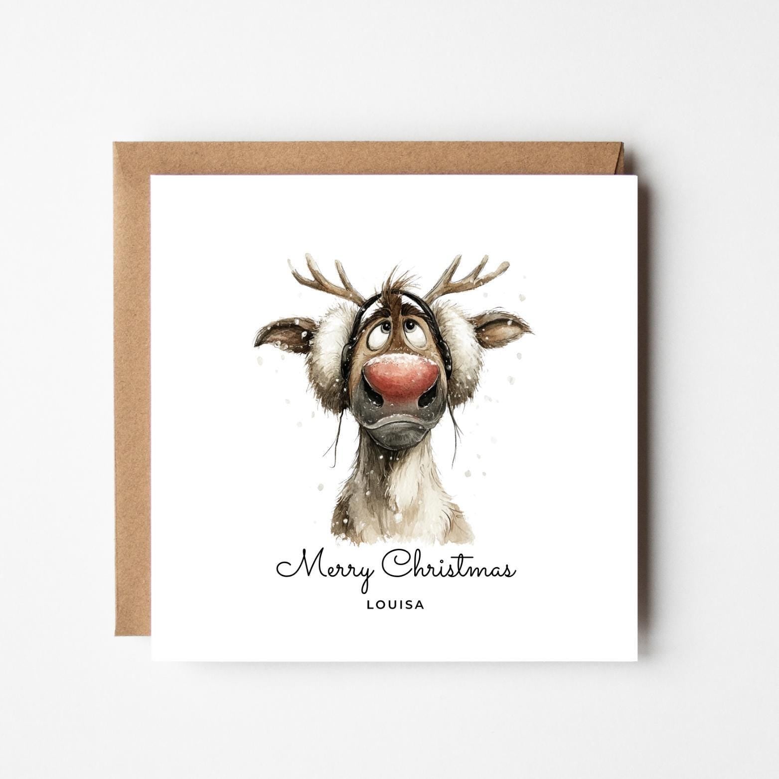 Personalised Funny Reindeer Christmas Card: Custom Xmas Card
