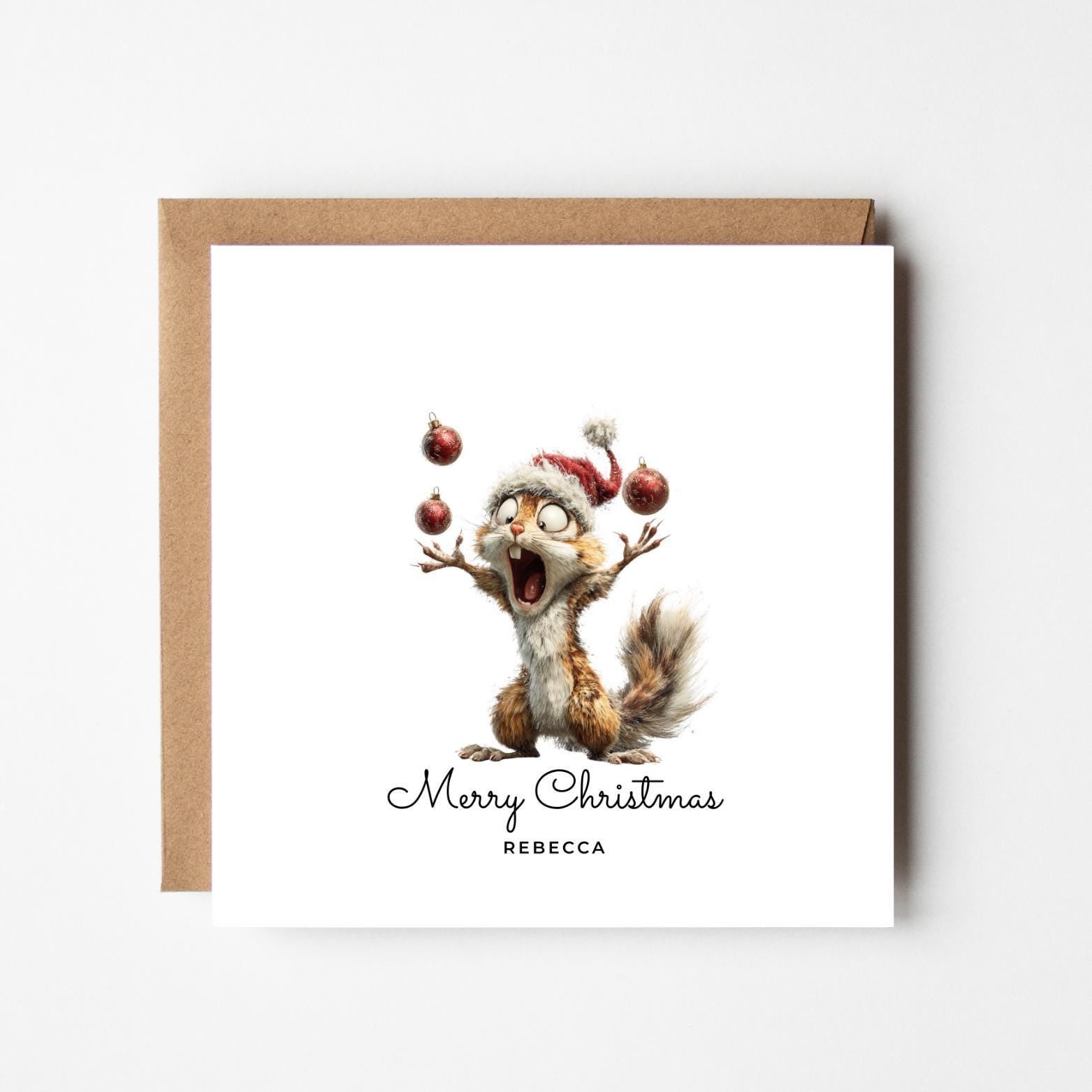 Personalised Funny Squirrel Christmas Card: Custom Cartoon Xmas Greeting