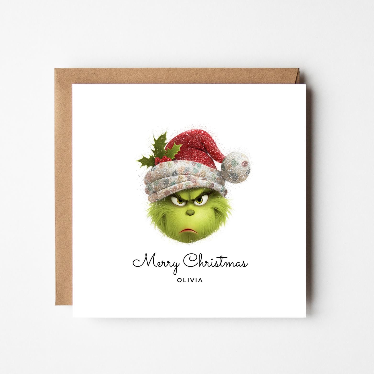 Personalised Grinch Christmas Card – Funny Grumpy Grinch Face – Custom Name Holiday Card – Unique Humour Xmas Greeting