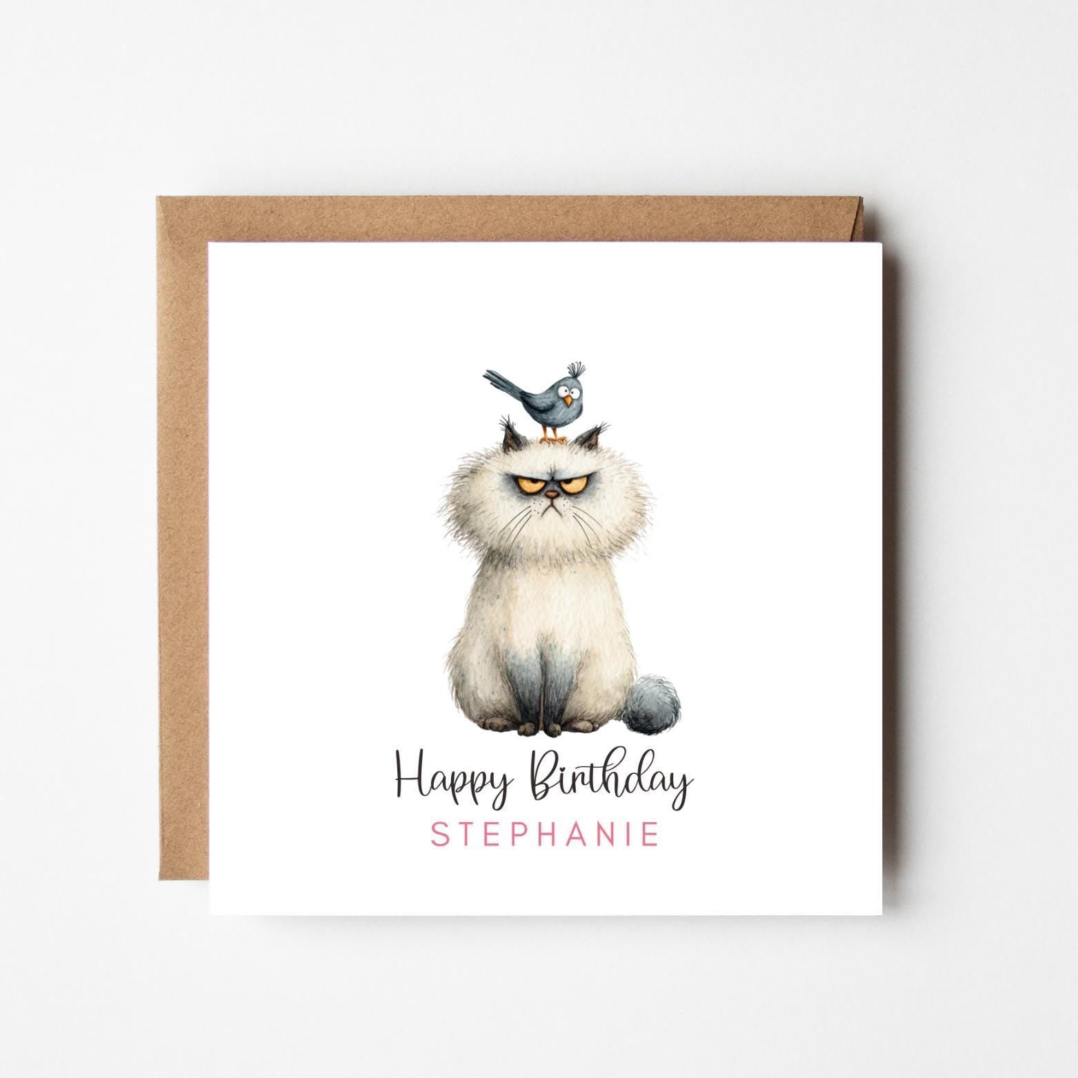 Personalised Grumpy Cat Birthday Card: Funny Custom Card