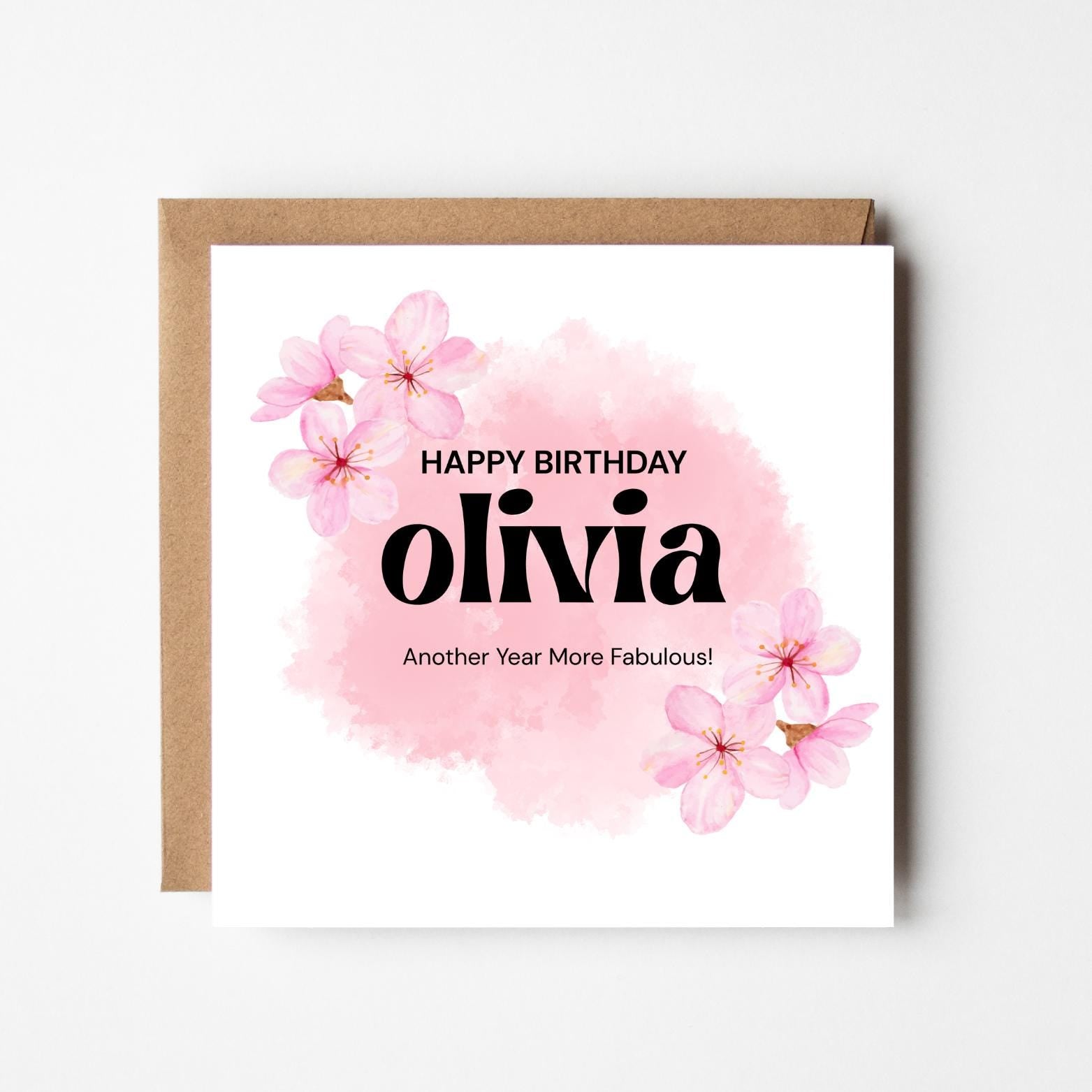 Brighten their day with this personalised “Happy Birthday” card, featuring a soft pink watercolour background and delicate florals. Add the recipient’s name to make it extra special and memorable.