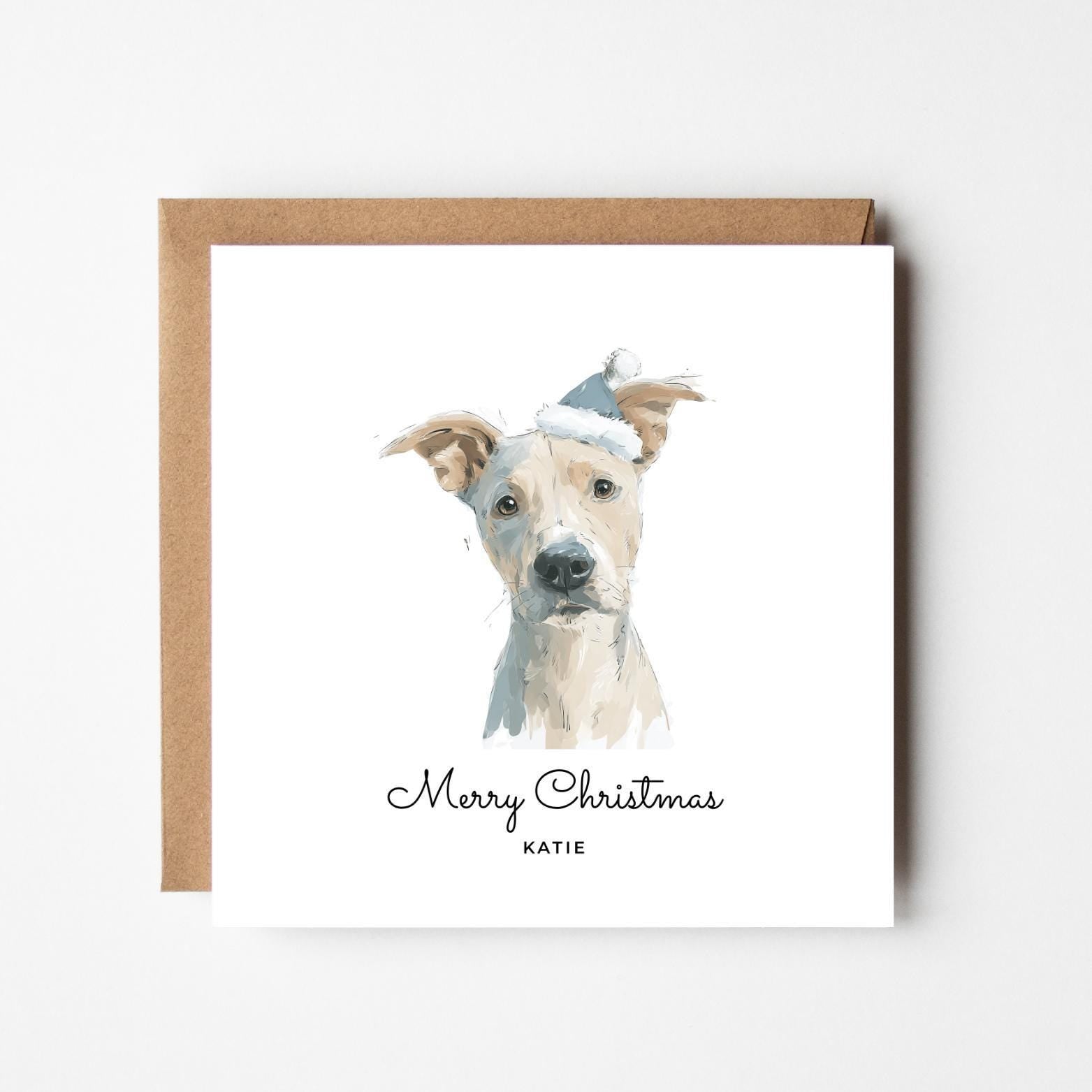 Personalised Pit Bull Christmas Card – Custom Dog Xmas Card – Cute Staffy Dog Holiday Card – Dog Mum Dog Dad Gift – Pet Name Card