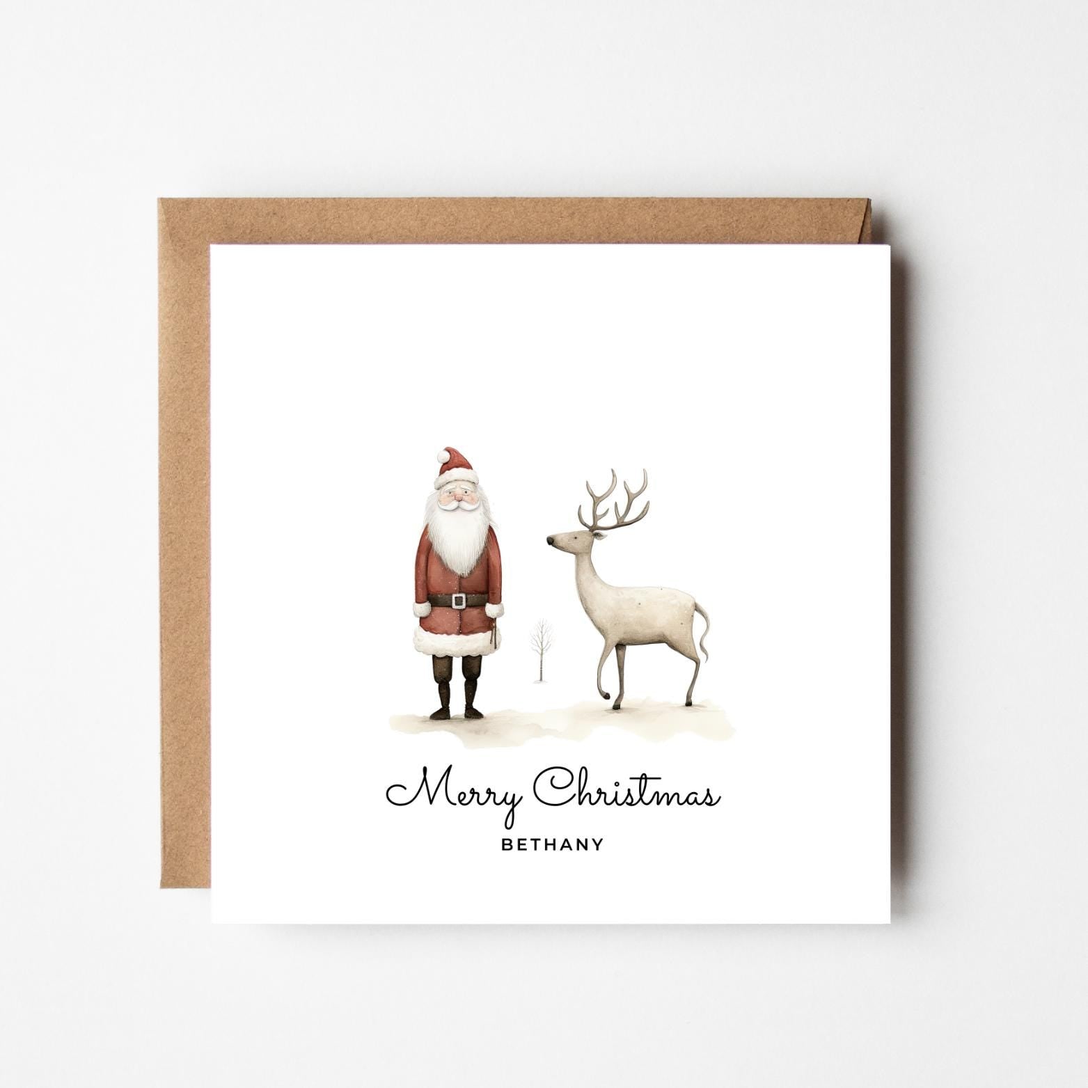 Personalised Santa Christmas Card: Reindeer Illustration, Custom Holiday Greeting