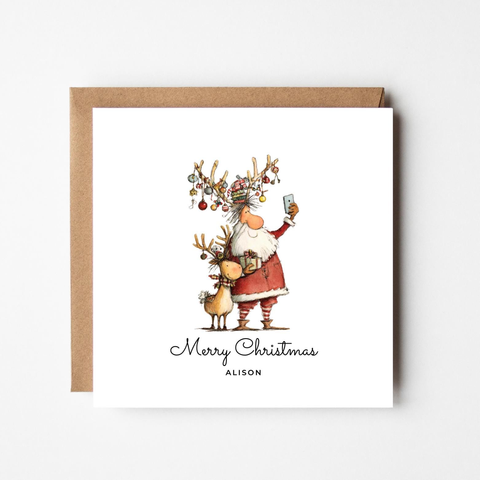 Personalised Santa & Rudolph Christmas Card: Funny Festive Holiday Greeting