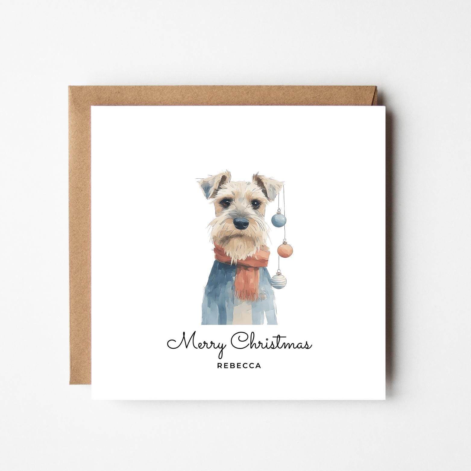 Personalised Schnauzer Christmas Card – Custom Dog Xmas Card – Cute Schnauzer Dog Lover Holiday Card – Dog Mum Dog Dad Gift – Pet Name Card