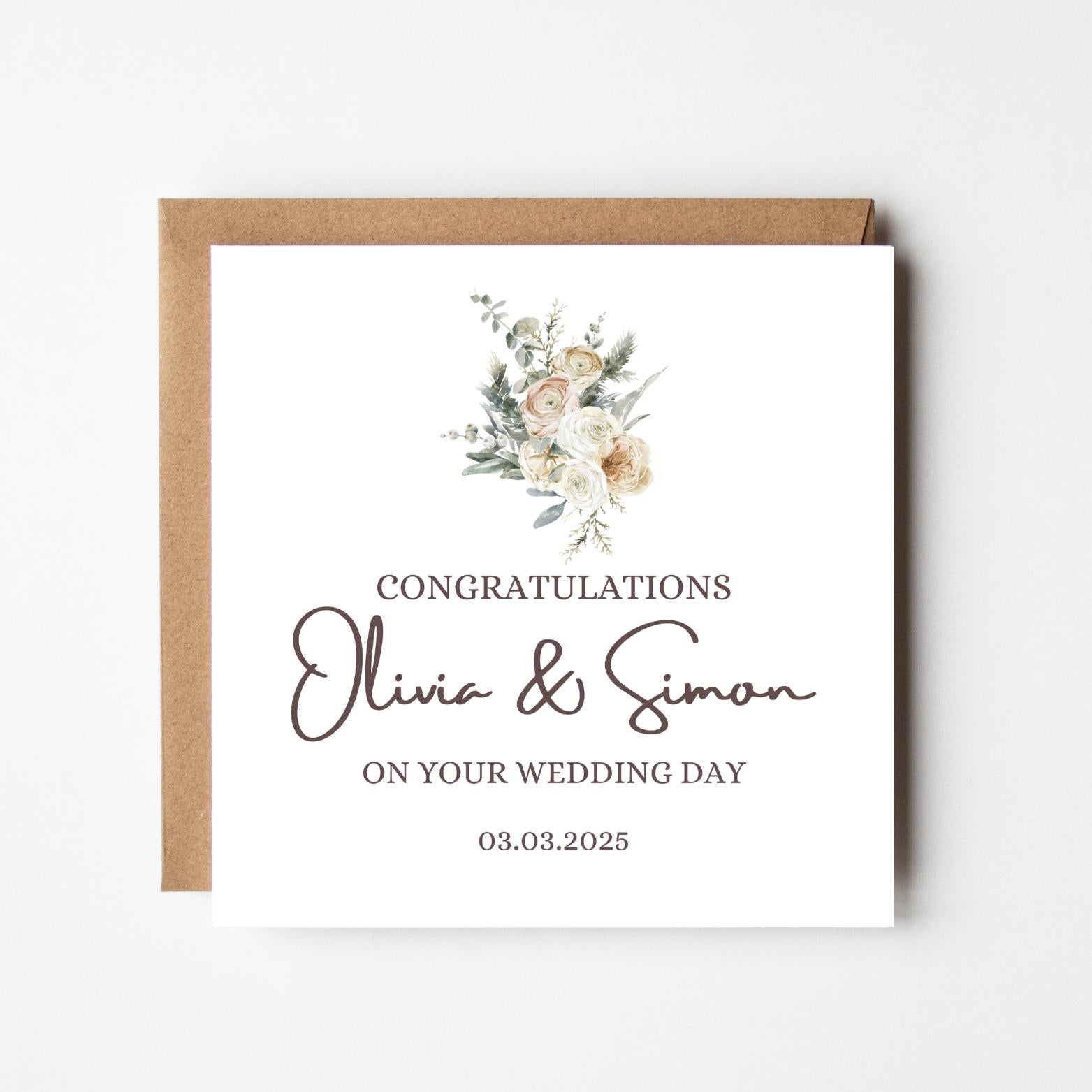 Personalised Wedding Congratulations Card: Floral Initials, Names & Date